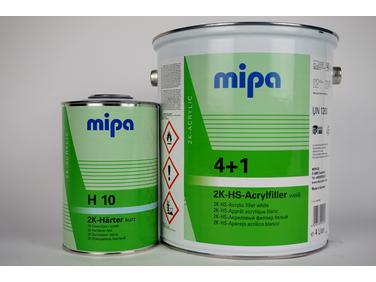 Podkład Mipa 4+1 Acrylfiller HS jest produktem o dużej sile wypełnienia, łatwym do szlifowania. Stosuje się go jako podkład wypełniający grubowarstwowy lub cienkowarstwowy. W połączeniu z Mipa 2K-Reaktivzusatz VR możliwa jest ekspresowe suszenie w temperaturach pokojowych lub w podwyższonej temperaturze. Zapewnia duże oszczędności w przepustowości kabiny lakierniczej, suszeniu piecowym oraz czasach pracy. Znajduje zastosowanie w niewielkich naprawach (Spot-Repair), nie tworzy brzegów i „nie siada”. Kolejną możliwością dzięki zastosowaniu dodatku Mipa 2K-Reaktivzusatz VR jest obróbka mokry-na-mokry. W tym przypadku po 10 minutach suszenia podkład może być polakierowany.