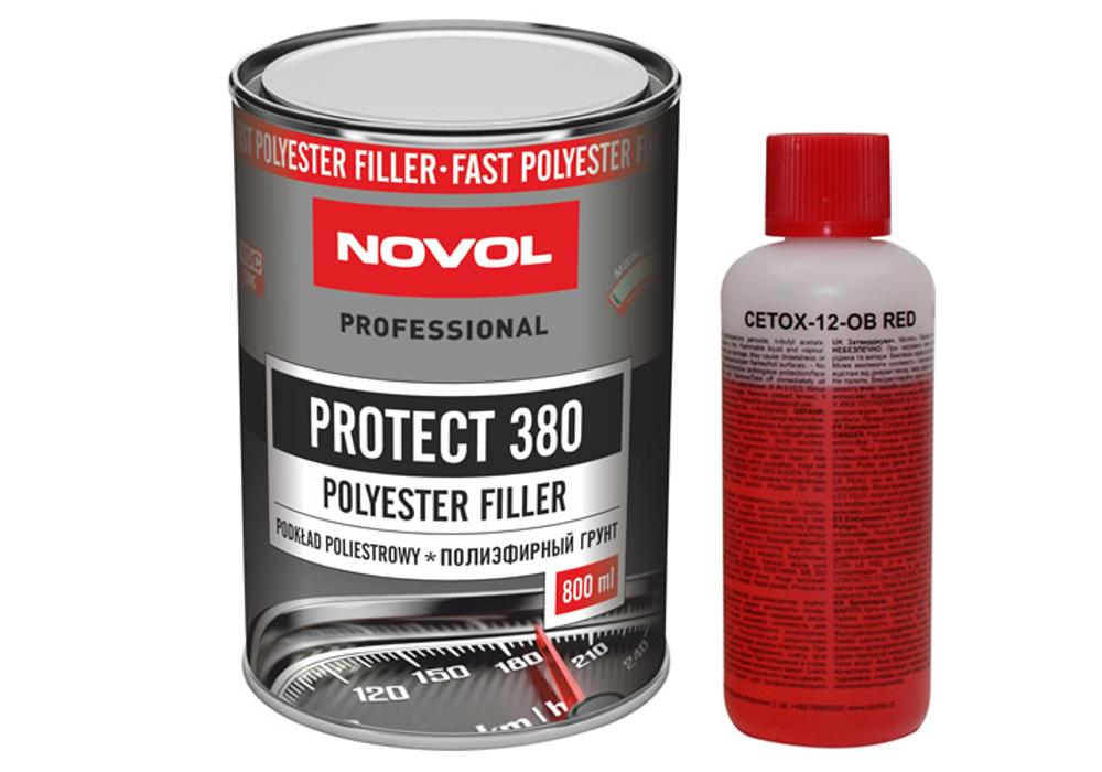 PROTECT 380 – poliestrowy podkład wypełniający nakładany natryskiem pneumatycznym. Wyrób po zmieszaniu z utwardzaczem posiada lepkość natryskową bez konieczności używania dodatkowego rozcieńczalnika. Użycie unikalnego wskaźnika pozwala na ocenę gotowości mieszanki do użycia (po zmianie koloru z oliwkowego na jasnobeżowy wyrób jest gotowy do natrysku) jak i ocenę dokładności wymieszania komponentów ze sobą. Pozwala na uzyskanie dużego wypełnienia przy zachowaniu gładkości powłoki nawet na bardzo dużych powierzchniach. Czas dojścia do szlifowania wynosi około 1.5 godziny w 20°C (można go skrócić przez wygrzewanie w temperaturze nie przekraczającej 60°C). Przeznaczona jest zarówno do obróbki mechanicznej, jak i ręcznej drobnoziarnistymi papierami ściernymi.