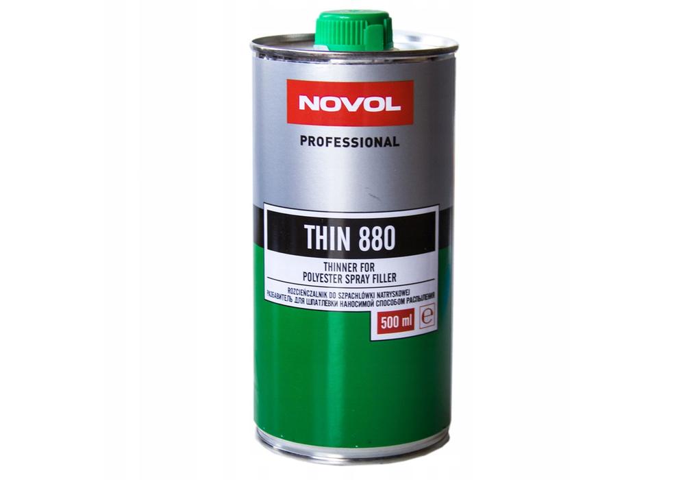 Rozcieńczalnik THIN 880 NOVOL jest rozcieńczalnikiem przeznaczony do szpachlówki natryskowej w produktach branży samochodowej, ale również jego skład chemiczny decyduje o tym, że doskonale nadaje się jako preparat do czyszczenia narzędzi oraz powierzchni z nieutwardzonych klejów i szpachli na bazie żywic poliestrowych.